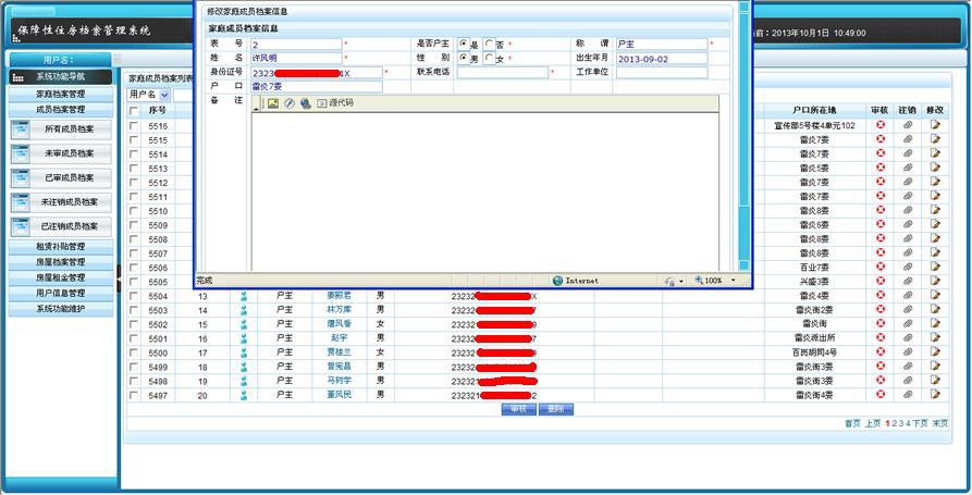 保障性住房檔案管理系統(tǒng)是針對房產局對住房申請人的檔案信息管理和住房補貼發(fā)放以及租金交納管理等開發(fā)的一套系統(tǒng),系統(tǒng)主要功能是采集申請家庭的成員詳細信息,采集信息包括:申請人姓名、身份證號、性別、所屬社區(qū)、原住址、保障性住房住址、低保證號、低保金額、個人備注、電子相片、租用合同、身份證復印件、家庭人數(shù)、收入情況、戶主類型、人均收入、房屋類型、建筑面積、保障方式等,本系統(tǒng)可同時集成硬件系統(tǒng)指紋儀拍像儀使用,采用B/S結構可網(wǎng)絡化管理,精確的權限管理可以分配多種賬戶權限來管理系統(tǒng),大大降低了一個人維護系統(tǒng)的工作量,方便快捷的一鍵式數(shù)據(jù)庫備份操作使數(shù)據(jù)安全做到萬無一失,無限極地區(qū)分類可以讓你隨意擴展系統(tǒng)的使用區(qū)域。